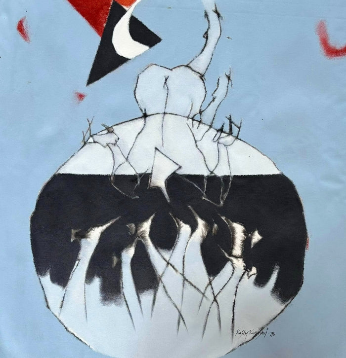 This figurative acrylic painting by Kasim Kanasavi features a pastel bluish wash layered with the artist’s fluid, signature linework. Central to the composition is an evocative line drawing of a bird feeding baby birds, symbolizing the dedication, nurturing, and dynamic spirit of motherhood. Inspired by both the joys and challenges of raising children—and influenced by the energy and motion of Tour de France cyclists—the painting invites viewers to reflect on the perseverance and pleasure woven through every mother’s journey. Created with acrylic washes and expressive lines, the piece includes subtle artist motifs and a signature placed at the center of a wheel, encouraging a lasting, personal connection with the artwork.